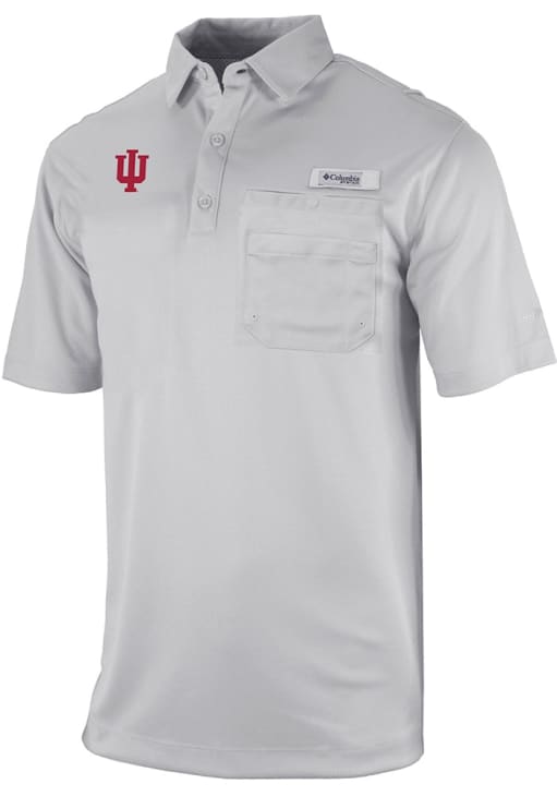 Enhance your professional style with this striking Mens Grey Short Sleeve Polo Shirt! Showcase your team pride among colleagues with this exceptional Indiana Grey Heat Seal Omni Wick Flycaster Short Sleeve Polo. Stand out and make a statement in this Indiana Hoosiers Short Sleeve Polo, featuring a heat seal team logo that adds a touch of distinction to your look.