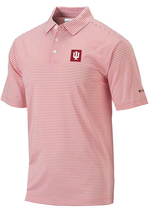 Mens Indiana Hoosiers Pink Columbia Invite Stripe Short Sleeve Polo Shirt