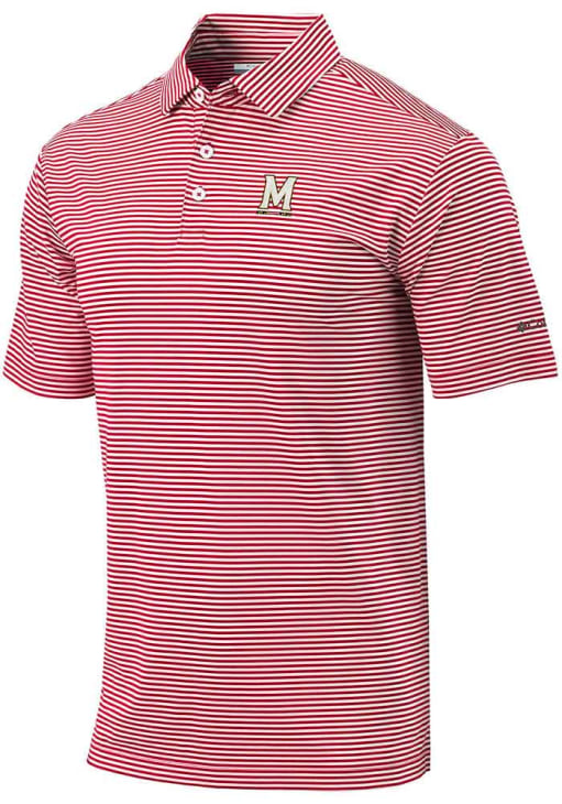 Mens Maryland Terrapins Red Columbia Invite Stripe Short Sleeve Polo Shirt
