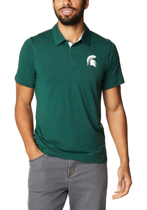 Enhance your professional style with this striking Mens Green Short Sleeve Polo Shirt! Showcase your team pride among colleagues with this exceptional MSU Green Tech Trail Short Sleeve Polo. Stand out and make a statement in this Michigan State Spartans Short Sleeve Polo, featuring a team logo embroidered on left chest that adds a touch of distinction to your look.