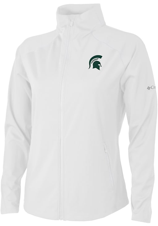 Stay warm and cozy with this Michigan State Spartans Womens White Fairway Friends Light Weight Jacket! Cheer on the Spartans in this MSU Light Weight Jacket. With a heat seal team logo, you won't want to be caught without this Light Weight Jacket on gameday.