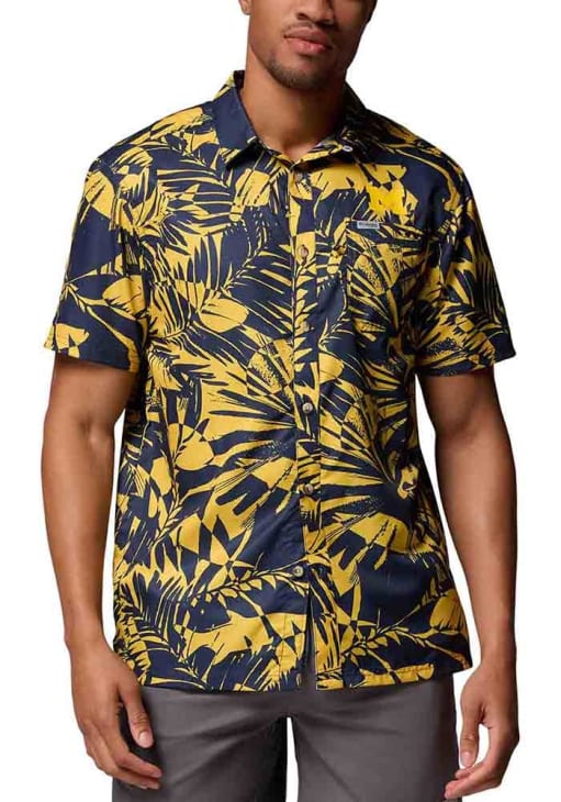 Elevate your style for any occasion with this sophisticated Michigan Wolverines Short Sleeve Dress Shirt! Let your Wolverines pride show in this Blue Super Slack Button Down Shirt. This Super Slack Michigan Dress Shirt is perfect for showing your Wolverines pride at the office. Featuring a heat transferred team graphic on left chest, this Michigan Wolverines Dress Shirt has a subtle touch of fan support.