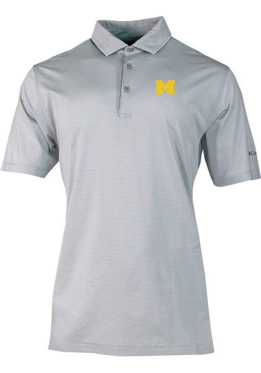Enhance your professional style with this striking Mens Grey Short Sleeve Polo Shirt! Showcase your team pride among colleagues with this exceptional Michigan Grey Heat Seal Double Hit Short Sleeve Polo. Stand out and make a statement in this Michigan Wolverines Short Sleeve Polo, featuring a team logo on left chest that adds a touch of distinction to your look.