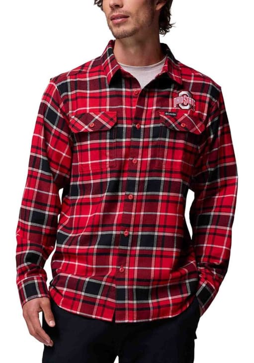 Show your Buckeyes spirit show in the office with this Ohio State Buckeyes Dress Shirt! Embrace your team spirit and showcase it proudly in this Mens Red Plaid Flare Gun Long Sleeve Long Sleeve Button Down Shirt. This Long Sleeve Dress Shirt features a embroidered team graphic on left chest.