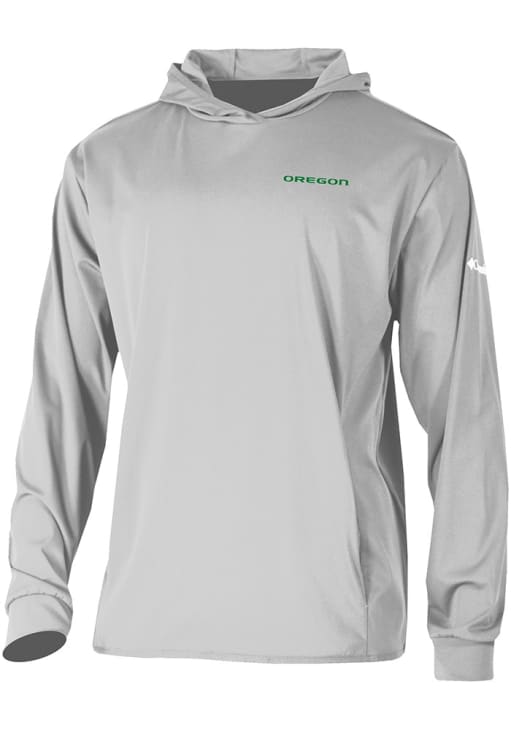 Embrace your Ducks pride and showcase your team spirit with confidence in this Oregon Ducks Long Sleeve Hoodie! Stay warm and stylish with the Oregon Mens Grey Heat Seal Long Drive Hooded Sweatshirt. Designed with heat seal team logo, this Ducks Long Sleeve Hoodie is a must-have for dedicated fans.