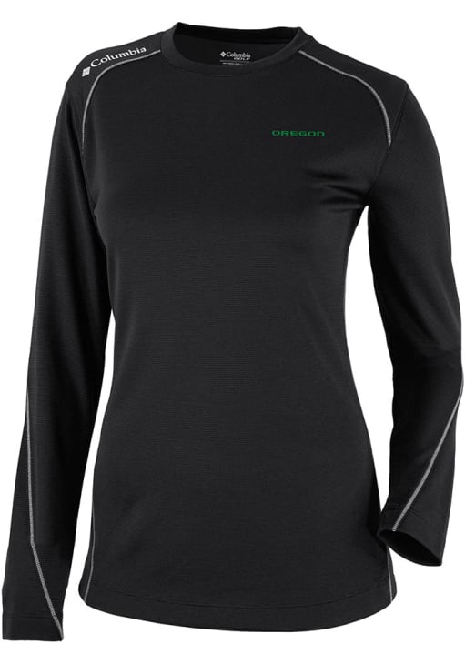 Size Chart for Womens Oregon Ducks Black Columbia Heat Seal Omni Wick Shot Gun Long Sleeve T-Shirt