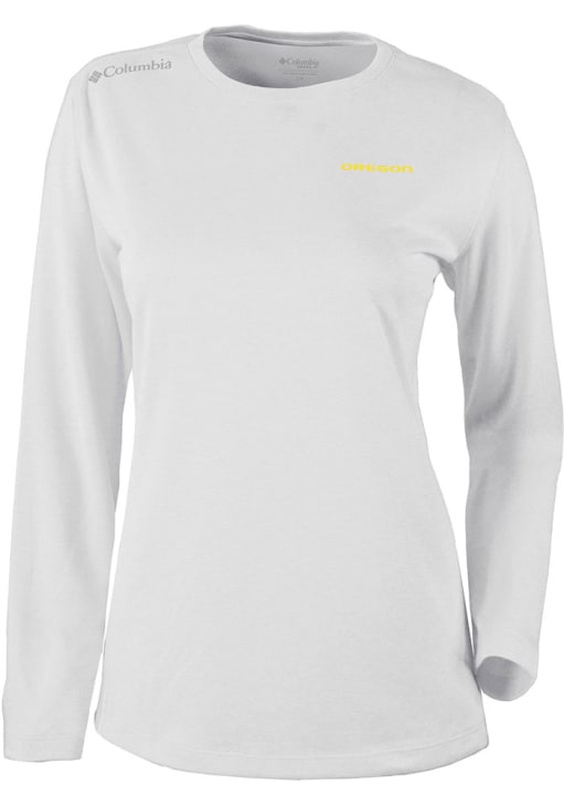 Size Chart for Womens Oregon Ducks White Columbia Heat Seal Omni Wick Shot Gun Long Sleeve T-Shirt