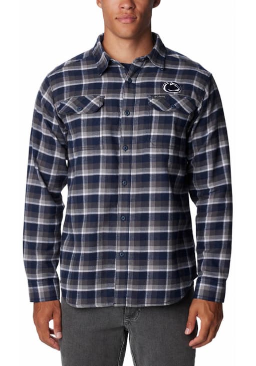 Show your Nittany Lions spirit show in the office with this Penn State Nittany Lions Dress Shirt! Embrace your team spirit and showcase it proudly in this Mens Navy Blue Plaid Flare Gun Long Sleeve Long Sleeve Button Down Shirt. This Long Sleeve Dress Shirt features a embroidered team graphic on left chest.