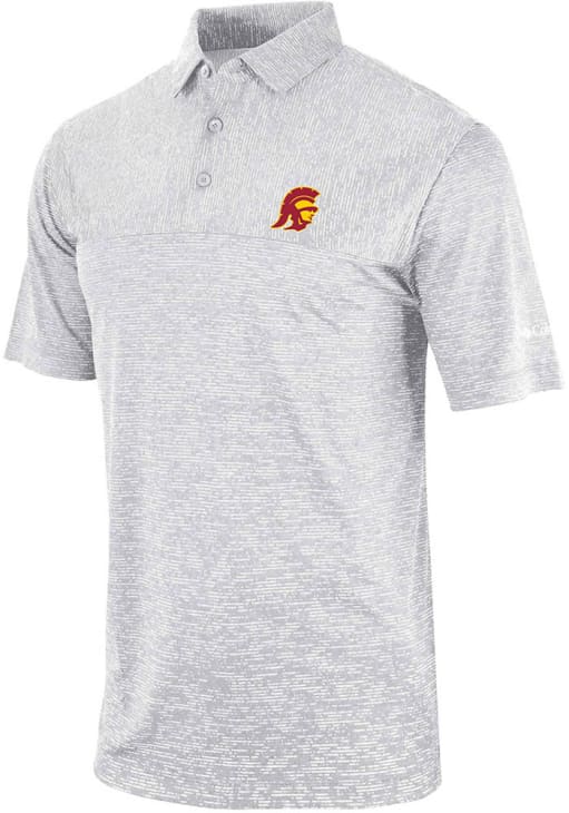 Enhance your professional style with this striking Mens Grey Short Sleeve Polo Shirt! Showcase your team pride among colleagues with this exceptional USC Grey Heat Seal Heading Out Short Sleeve Polo. Stand out and make a statement in this USC Trojans Short Sleeve Polo, featuring a heat seal team logo that adds a touch of distinction to your look.