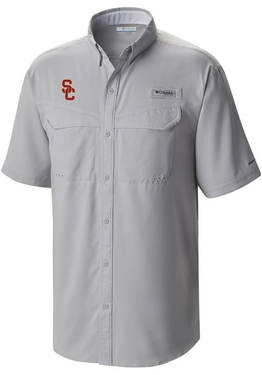Elevate your style for any occasion with this sophisticated USC Trojans Short Sleeve Dress Shirt! Let your Trojans pride show in this Grey Heat Seal Low Drag Offshore Button Down Shirt. This Heat Seal Low Drag Offshore USC Dress Shirt is perfect for showing your Trojans pride at the office. Featuring a heat seal team logo, this USC Trojans Dress Shirt has a subtle touch of fan support.