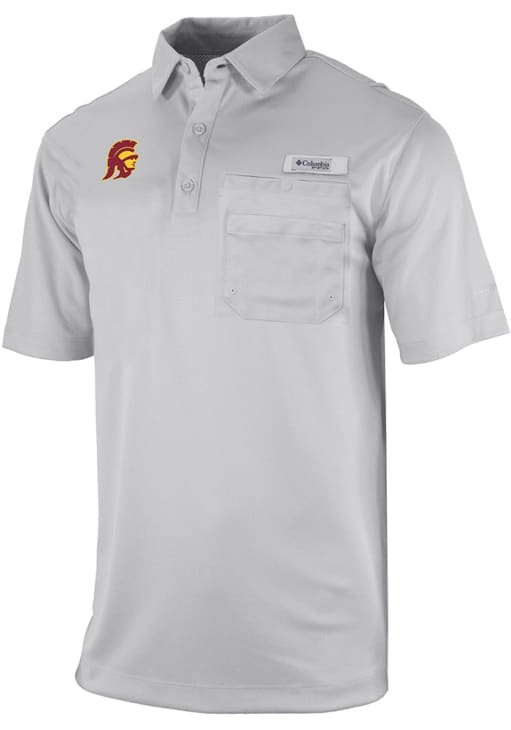 Enhance your professional style with this striking Mens Grey Short Sleeve Polo Shirt! Showcase your team pride among colleagues with this exceptional USC Grey Heat Seal Omni Wick Flycaster Short Sleeve Polo. Stand out and make a statement in this USC Trojans Short Sleeve Polo, featuring a heat seal team logo that adds a touch of distinction to your look.
