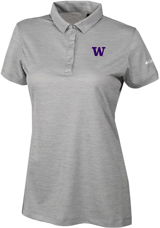 Enhance your professional style with this striking Womens Grey Short Sleeve Polo Shirt! Showcase your team pride among colleagues with this exceptional Washington Grey Heat Seal Set II Short Sleeve Polo. Stand out and make a statement in this Washington Huskies Short Sleeve Polo, featuring a heat seal team logo that adds a touch of distinction to your look.