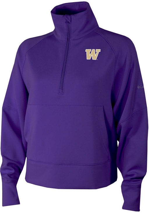 Embrace your Huskies spirit with pride in this Washington Huskies Long Sleeve Qtr Zip. This Womens Purple Heat Seal Wickham Hills Long Sleeve Pullover showcases a heat seal team logo. You'll want to wear this Washington Huskies Long Sleeve Qtr Zip every day.