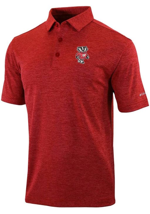 Mens Wisconsin Badgers Red Columbia Set II Short Sleeve Polo Shirt