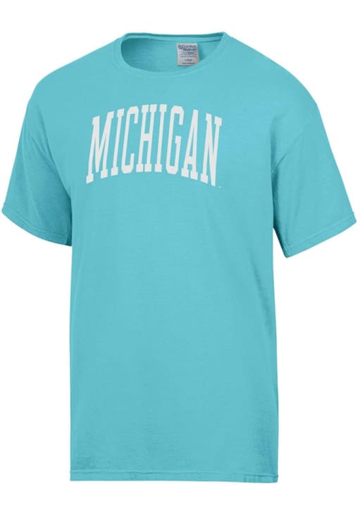 Display your team spirit with this remarkable Michigan Wolverines ComfortWash Teal Garment Dyed Short Sleeve T Shirt! The Michigan Short Sleeve Tee showcases a screen print graphics that truly sets it apart. Stand out from the crowd and proudly declare your allegiance to the Wolverines with this exceptional Teal Michigan T Shirt. Go Michigan!