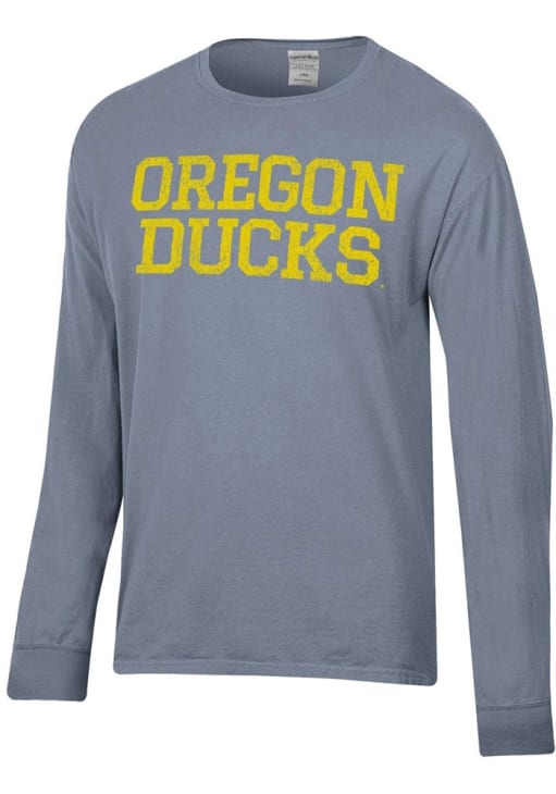 Show your Oregon Ducks spirit in this Oregon Grey T Shirt! This Oregon Stacked Garment Dyed Long Sleeve T Shirt makes a great layer for cooler nights cheering on the Ducks. Featuring a screen print team graphic on front chest, this Oregon Ducks Long Sleeve Tee is an essential addition for every fan. Go Ducks!