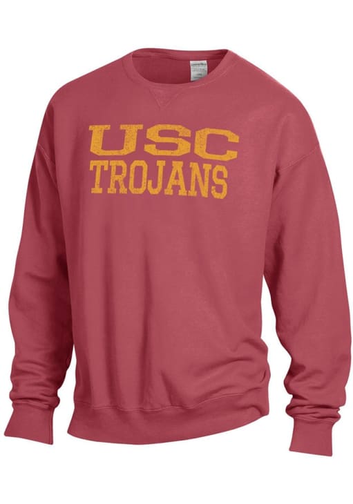 Gear up for the ultimate game day experience with this remarkable USC TrojansMens Crimson Garment Dyed Crew Sweatshirt! Designed with the true fan in mind, this Trojans Long Sleeve Crew Sweatshirt features a screen print graphics. Stay warm and comfortable with this Mens USC Trojans Crew Sweatshirt.