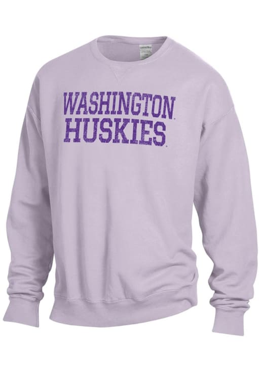Gear up for the ultimate game day experience with this remarkable Washington HuskiesMens Lavender Garment Dyed Crew Sweatshirt! Designed with the true fan in mind, this Huskies Long Sleeve Crew Sweatshirt features a screen print graphics. Stay warm and comfortable with this Mens Washington Huskies Crew Sweatshirt.