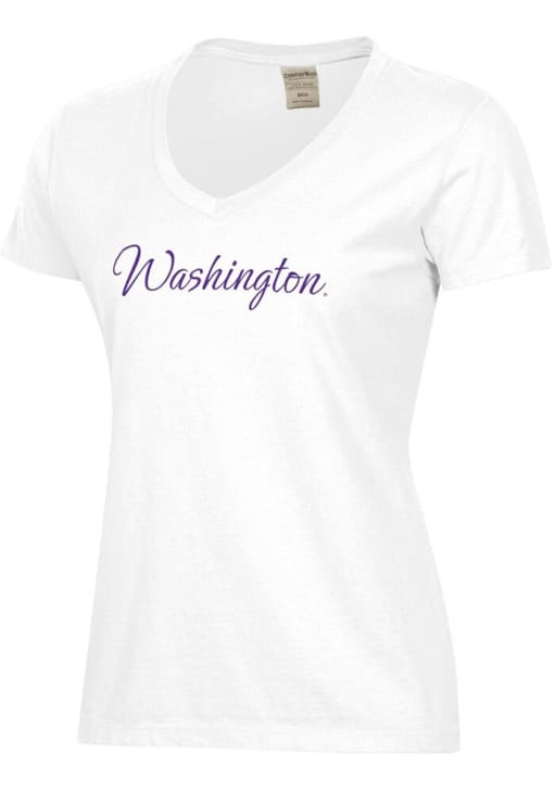 Display your team spirit with this remarkable Washington Huskies White Garment Dyed Script Short Sleeve T-Shirt! The Washington Short Sleeve Tee showcases a screen print graphics that truly sets it apart. Stand out from the crowd and proudly declare your allegiance to the Huskies with this exceptional White Washington T-Shirt. Bow Down to Washington!