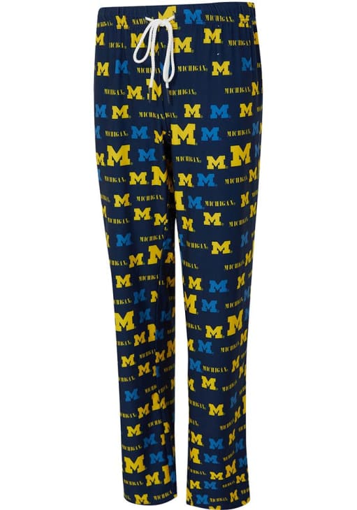 Embrace the cozy comfort with the Wolverines in these comfy Michigan Wolverines Blue Womens Sleep Pants. The Michigan Mosaic Lounge Pants a perfect for lounging around or watching the game. These Sleep Pants feature a all over screen print team name and logo.
