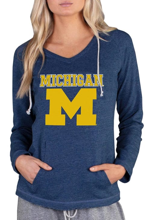 Embrace your Wolverines pride and showcase your team spirit with confidence in this Michigan Wolverines Long Sleeve Hoodie! Stay warm and stylish with the Michigan Womens Blue Mainstream Terry Hooded Sweatshirt. Designed with team colors and logo, this Wolverines Long Sleeve Hoodie is a must-have for dedicated fans.