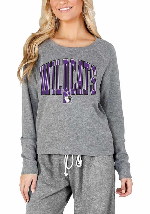 Gear up for the ultimate game day experience with this remarkable Northwestern WildcatsWomens Grey Mainstream Crew Sweatshirt! Designed with the true fan in mind, this Wildcats Long Sleeve Sweatshirt features a bold Northwestern University graphic. Stay warm and comfortable with this Womens Northwestern Wildcats Wildcats Crew Sweatshirt.