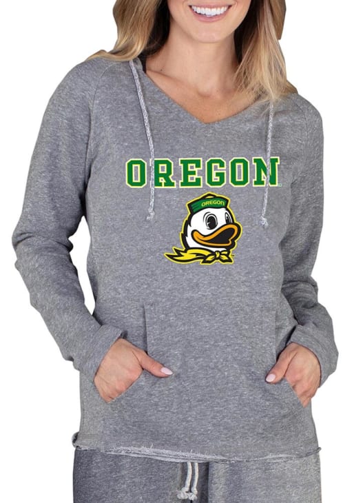Embrace your Ducks pride and showcase your team spirit with confidence in this Oregon Ducks Long Sleeve Hoodie! Stay warm and stylish with the Oregon Womens Grey Mainstream Terry Hooded Sweatshirt. Designed with team colors and logo, this Ducks Long Sleeve Hoodie is a must-have for dedicated fans.