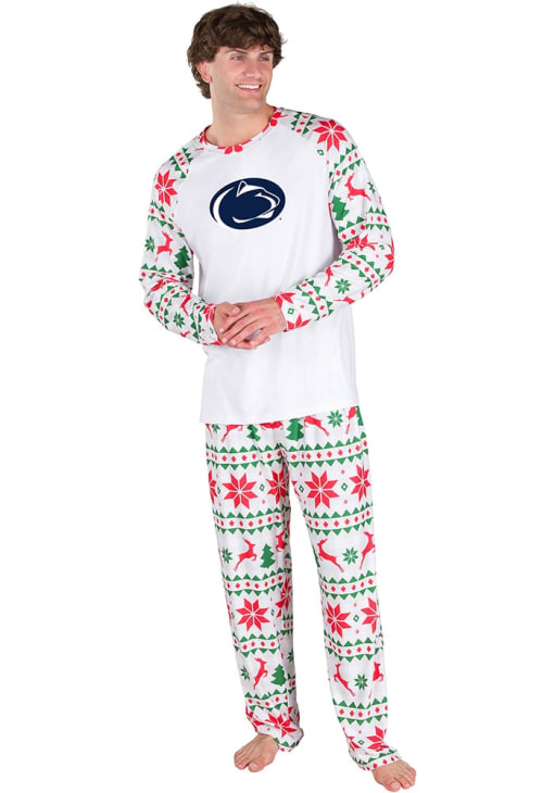 Product Details Product Details Digital TransferButtery soft fabricBold fair isle inspired holiday printClassic Raglan LS top and open leg bottomPerfect set for your holiday celebrations92% POLYESTER/8% SPANDEX Officially Licensed Get Penn State Nittany Lions fan ready for sweet dreams of gameday with this White Mens Sleep Pants Loungewear! This Sleep Pants Loungewear features a holiday design and team logo and is ready to be sported by any fan.