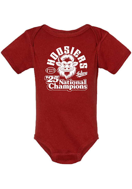 Your little Hoosiers fan will look adorable in this Baby Crimson Indiana Hoosiers 2025 College Football National Champions Vintage Bull 16-0 One Piece! This Indiana Hoosiers Romper features a screen print team graphic.