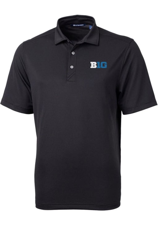 Enhance your professional style with this striking Black Big and Tall Polo! Showcase your team pride among colleagues with this exceptional Big Ten Black Virtue Eco Pique Graphic Big and Tall Golf Shirt. Stand out and make a statement in this Big Ten Big and Tall Golf Shirt, featuring a moisture wicking material that adds a touch of distinction to your look.