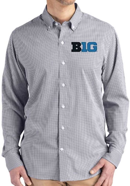 Show your Big Ten spirit show in the office with this Big Ten Dress Shirt! Embrace your team spirit and showcase it proudly in this Mens Black Gingham LS Woven Long Sleeve Long Sleeve Button Down Shirt. This Long Sleeve Dress Shirt features a team logo.
