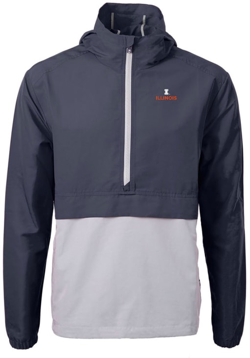 Mens Illinois Fighting Illini Navy Blue Cutter and Buck Charter Eco Pullover Jackets
