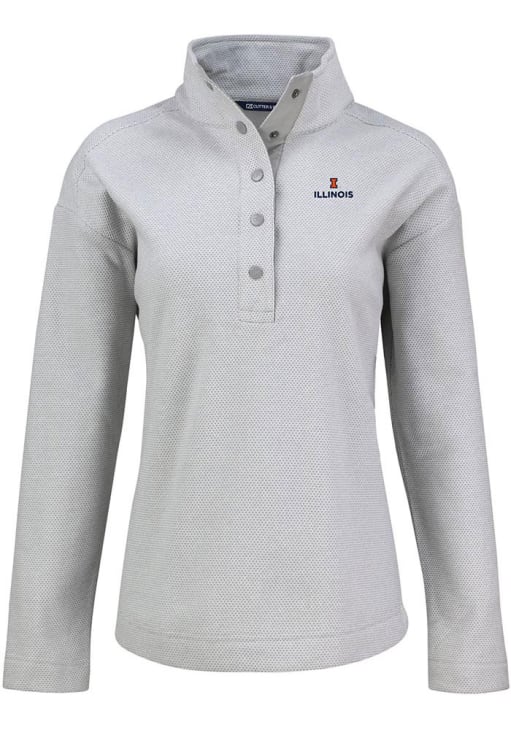 Embrace the warmth and showcase your Fighting Illini pride with our Illinois Fighting Illini Long Sleeve Qtr Zip. This Womens Grey Hunts Point Long Sleeve Pullover offers a team logo on chest for the perfect combination of comfort and style. Elevate your everyday look with this must-have Illinois Fighting Illini Long Sleeve Qtr Zip.