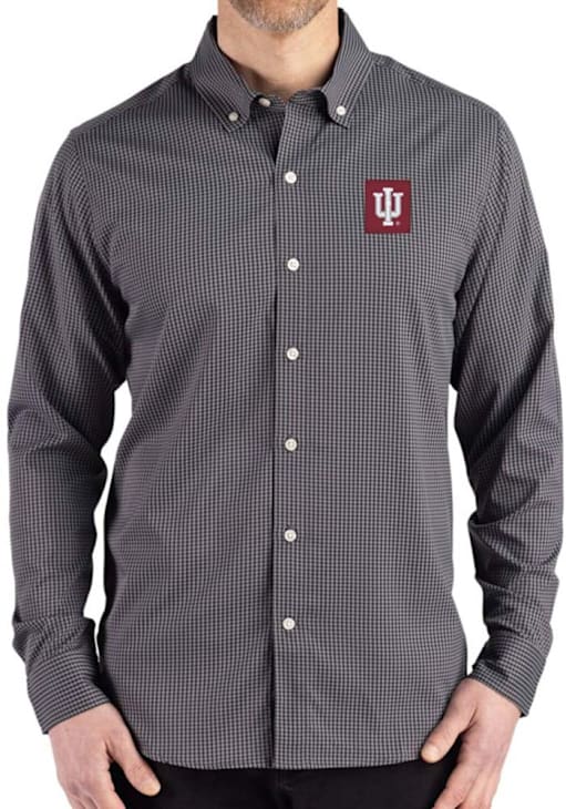 Mens Indiana Hoosiers Black Cutter and Buck Gingham LS Woven Long Sleeve Dress Shirt