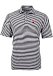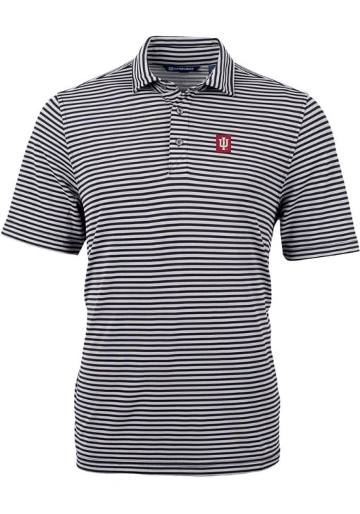 Mens Indiana Hoosiers Black Cutter and Buck Virtue Eco Pique Stripe Short Sleeve Polo Shirt