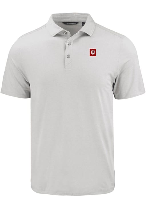 Mens Indiana Hoosiers Charcoal Cutter and Buck Block Logo Coastline Eco Short Sleeve Polo Shirt