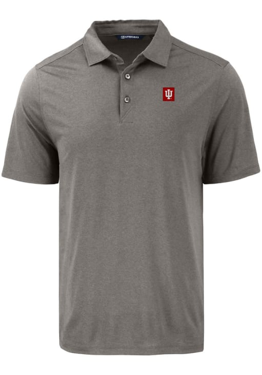 Mens Indiana Hoosiers Grey Cutter and Buck Block Logo Coastline Eco Short Sleeve Polo Shirt