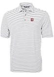 Mens Indiana Hoosiers Grey Cutter and Buck Virtue Eco Pique Stripe Short Sleeve Polo Shirt