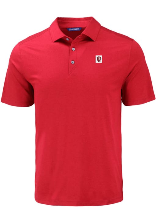 Mens Indiana Hoosiers Red Cutter and Buck Block Logo Coastline Eco Short Sleeve Polo Shirt