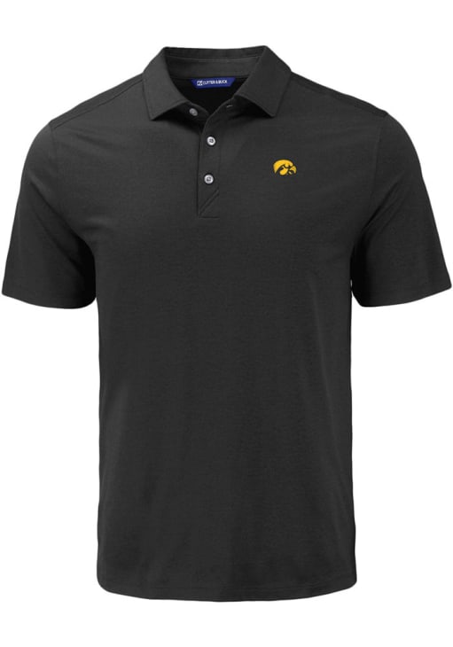 Mens Iowa Hawkeyes Black Cutter and Buck Coastline Eco Short Sleeve Polo Shirt