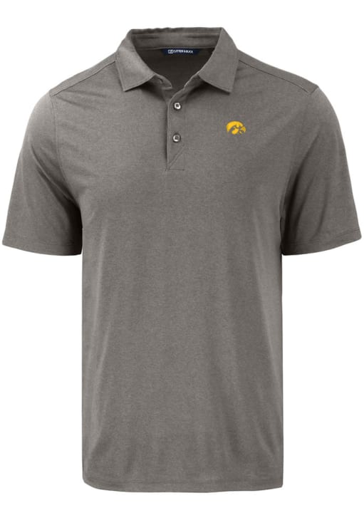 Mens Iowa Hawkeyes Grey Cutter and Buck Coastline Eco Short Sleeve Polo Shirt