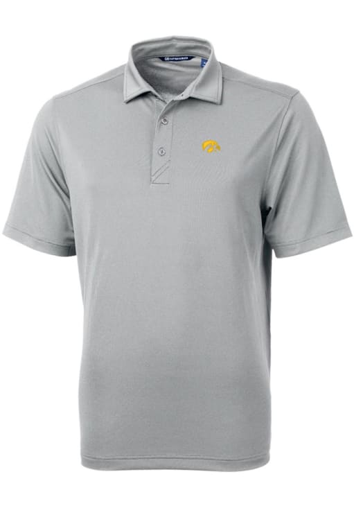 Mens Iowa Hawkeyes Grey Cutter and Buck Virtue Eco Pique Short Sleeve Polo Shirt