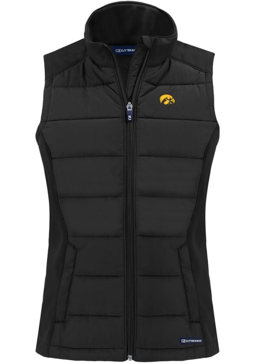 Gear up for the upcoming tailgate with the ultimate Iowa Hawkeyes Womens Black Vest. Stay warm in this Hawkeyes Evoke Sleeveless Jacket, which features a 100% recycled polyester bonded honeycomb softshell.