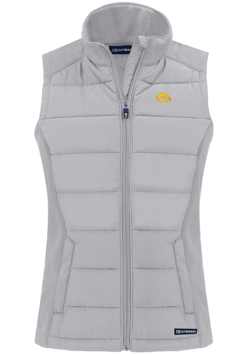 Gear up for the upcoming tailgate with the ultimate Iowa Hawkeyes Womens Charcoal Vest. Stay warm in this Hawkeyes Evoke Sleeveless Jacket, which features a 100% recycled polyester bonded honeycomb softshell.