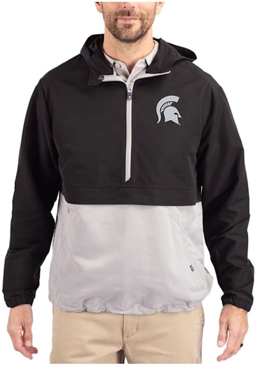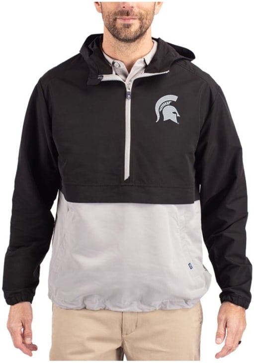 Mens Michigan State Spartans Black Cutter and Buck Charter Eco Pullover Jackets