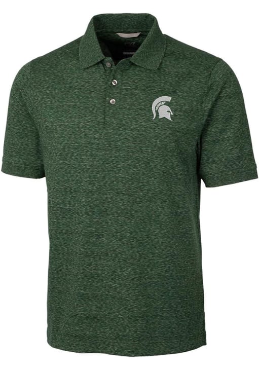 Mens Michigan State Spartans Green Cutter and Buck Advantage Space Dye Short Sleeve Polo Shirt