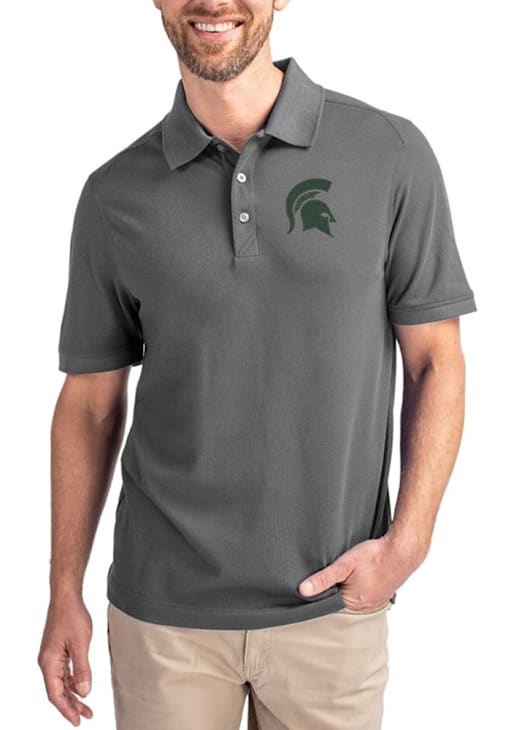 Enhance your professional style with this striking Mens Grey Short Sleeve Polo Shirt! Showcase your team pride among colleagues with this exceptional MSU Grey Advantage Short Sleeve Polo. Stand out and make a statement in this Michigan State Spartans Short Sleeve Polo, featuring a knit pique with soft wash finish that adds a touch of distinction to your look.