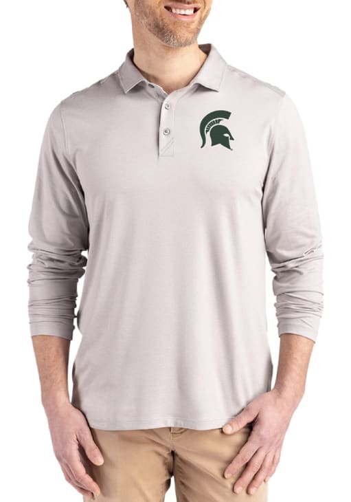 Make a bold statement in this Michigan State Spartans Cutter and Buck Mens Grey Coastline Long Sleeve Long Sleeve Polo! This Polo features a team logo on left chest, making this Mens Long Sleeve Polo Shirt perfect for any MSU fan who wants to display their spirit in any setting.