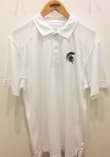 Enhance your professional style with this striking Mens White Short Sleeve Polo Shirt! Showcase your team pride among colleagues with this exceptional MSU White Genre Short Sleeve Polo. Stand out and make a statement in this Michigan State Spartans Short Sleeve Polo, featuring a team embroidery on left chest that adds a touch of distinction to your look.
