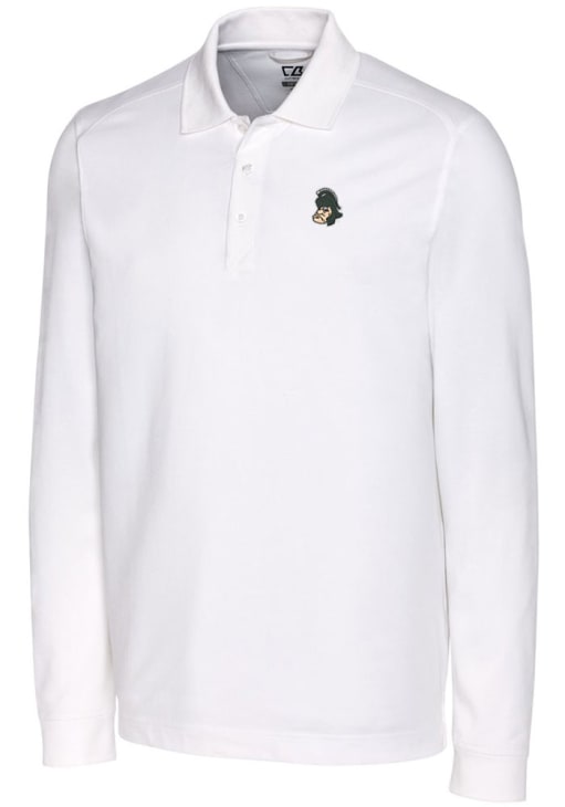 Make a bold statement in this Michigan State Spartans Cutter and Buck Mens White Vault Advantage Long Sleeve Long Sleeve Polo! This Polo features a vault team logo, making this Mens Long Sleeve Polo Shirt perfect for any MSU fan who wants to display their spirit in any setting.